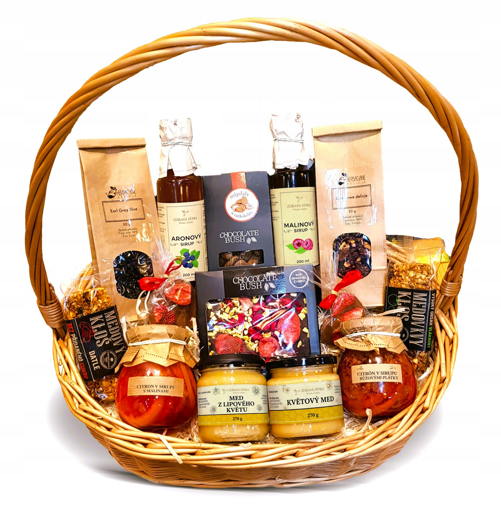 Tento štědrý, ručně balený dárkový koš je plný těch nejkvalitnějších prémiových pochoutek, poctivých medů a zdravých dobrot. Je to ideální volba pro každou příležitost – ať už hledáte nezapomenutelný dárek k narozeninám, svátku, výročí, nebo hledáte elegantní poděkování pro vaše blízké či obchodní partnery.